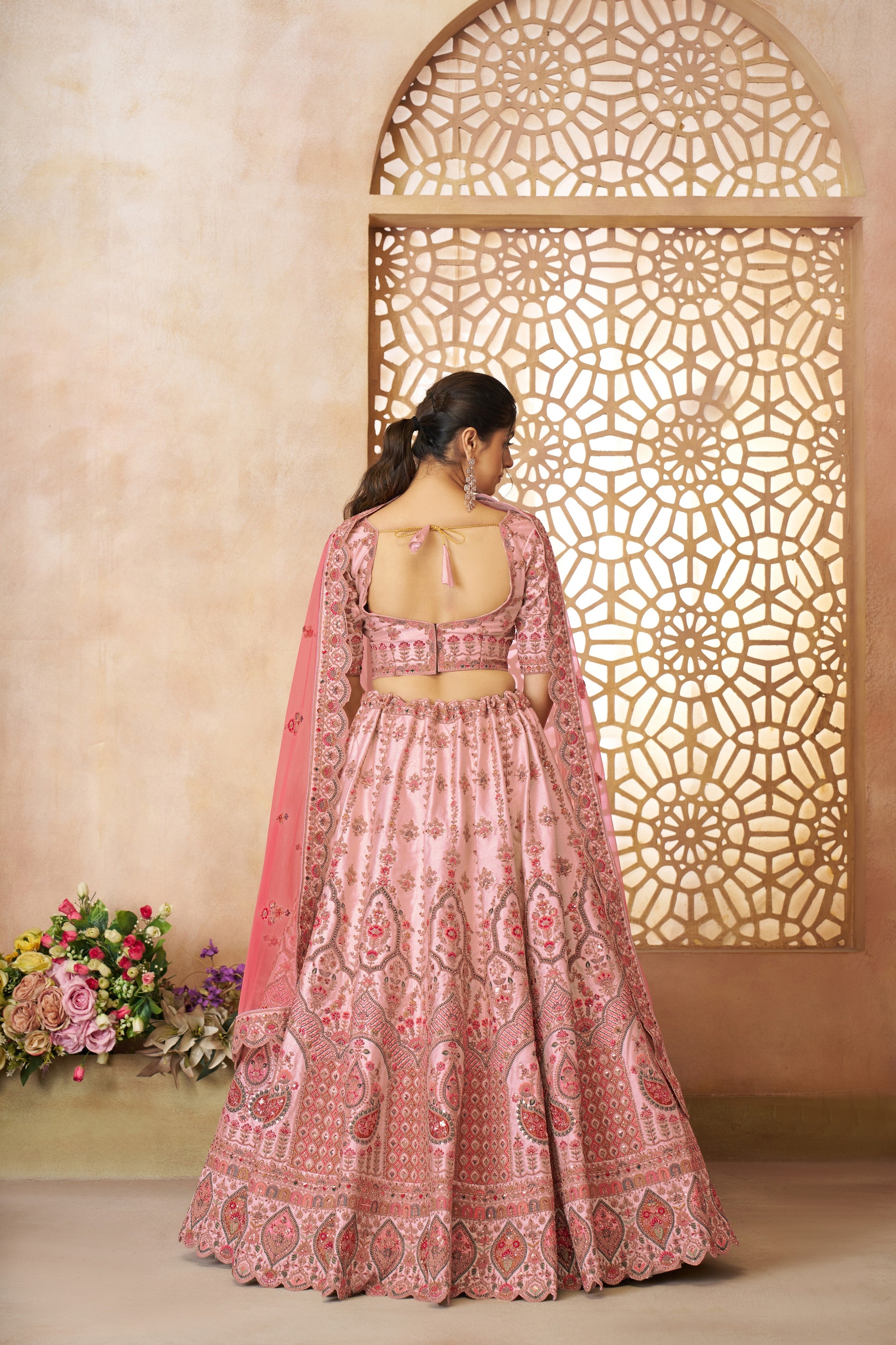 Adorable Pink Silk Embroidery Wedding Wear Lehenga Choli